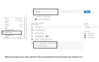 Add to Calendar is a convenient Chrome extension that allows you to create Google Calendar appointments with ease. This free add-on eliminates the need for manual copy and paste by automatically defaulting the title of the appointment to the title of the page you are on. It also adds the URL of the page to the body of the event, making it easy to reference the details later when the reminder comes.